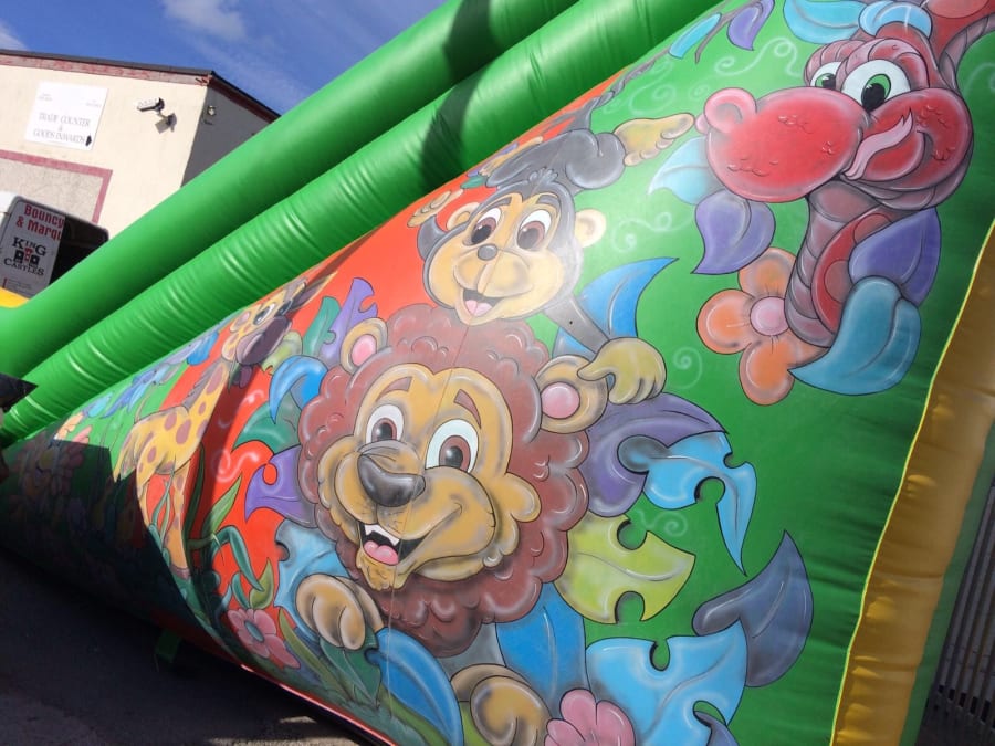 This is available for hire separately but can also be attached to our jungle themed assault course which has amazing matching artwork and provides great obstacles and activities to entertain for hours.