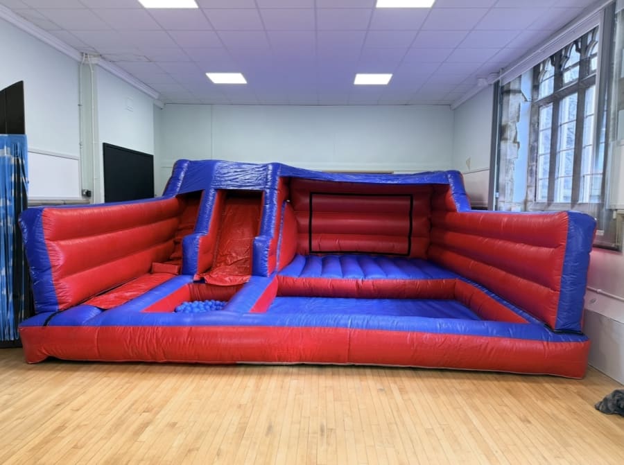 New exclusive to King Of The Castles built in house by our manufacturing team we have this amazing inflatable play park including a not just a bouncy castle but also a 5ft platform direct into slide into a ballpool giving extra fun for the children .