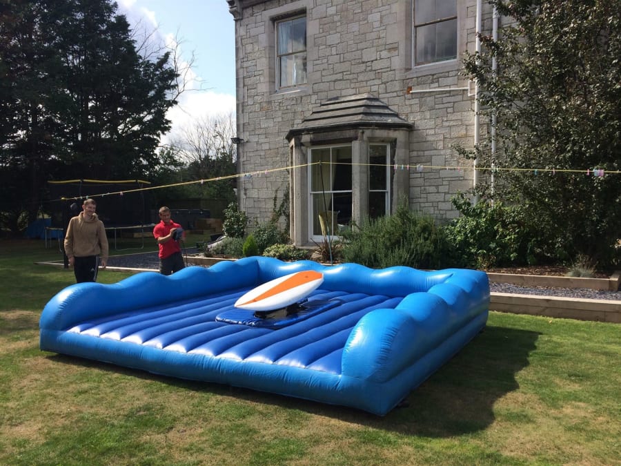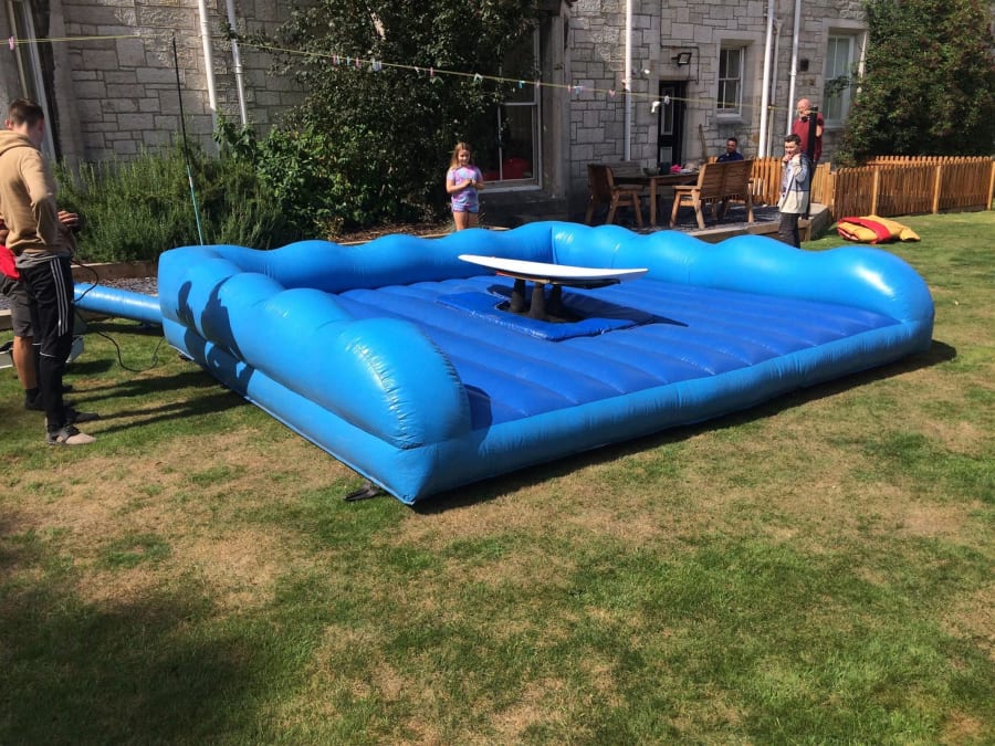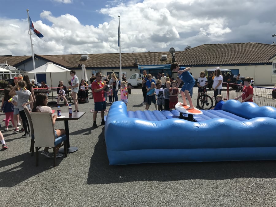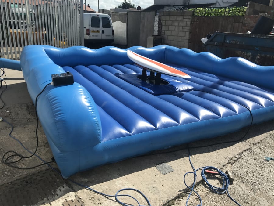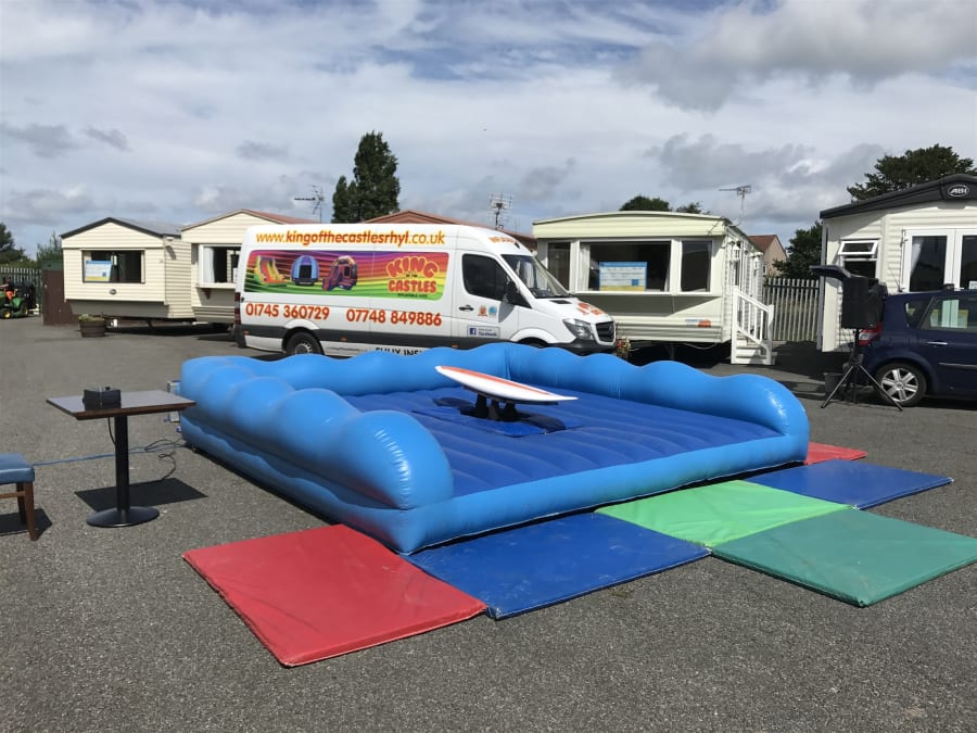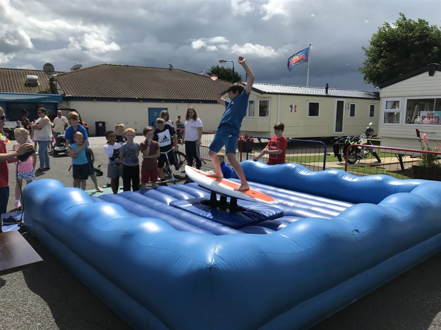 With realistic wave simulation you'll need to keep those legs as steady as a rock, while the simulator tips and dips until it eventually tumbles you on to the soft, inflatable platform below.